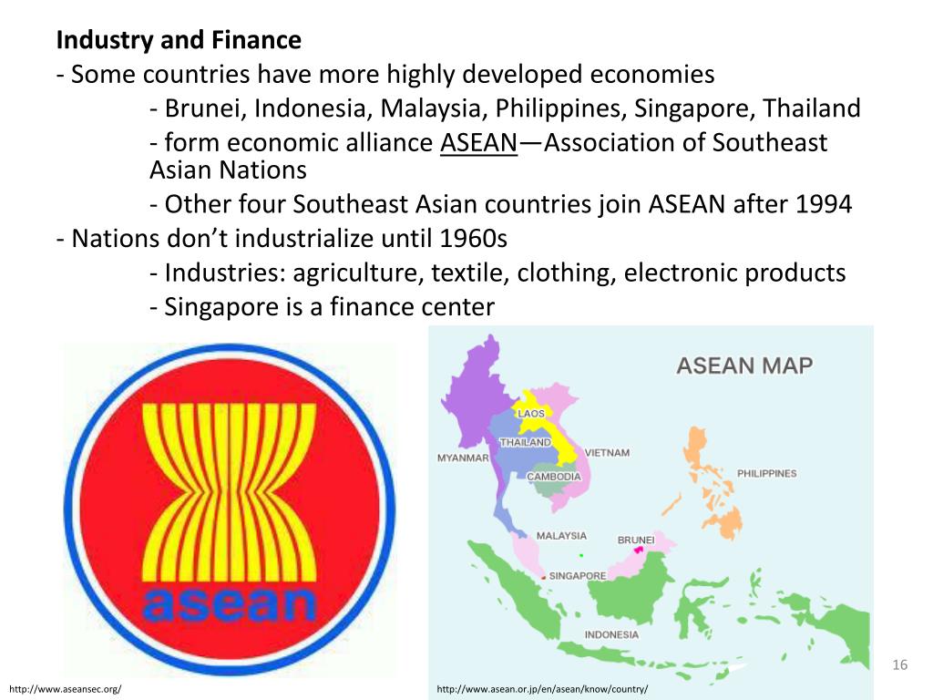 Ассоциация государств Юго-Восточной Азии (АСЕАН) была создана в 1967 г. Индонезией, Малайзией, Филиппинами, Сингапуром и Таиландом для содействовать политическому и экономическому сотрудничеству и региональной стабильности.Бруней присоединился к АСЕАН в 1984 году, вскоре после обретения ею независимости от Соединенного Королевства, а Вьетнам стал седьмым членом АСЕАН в 1995 году. Лаос и Бирма стали полноправными членами в июле 1997 года, когда АСЕАН отпраздновала свое 30-летие. Камбоджа стала десятым членом АСЕАН в 1999 году.