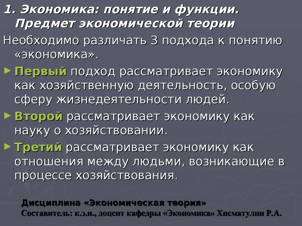 Существует несколько сходных подходов к определению предмета экономической теории. В своей