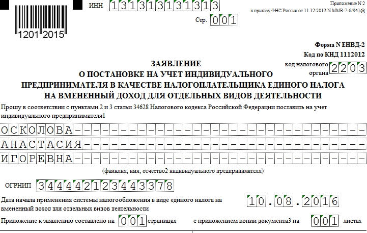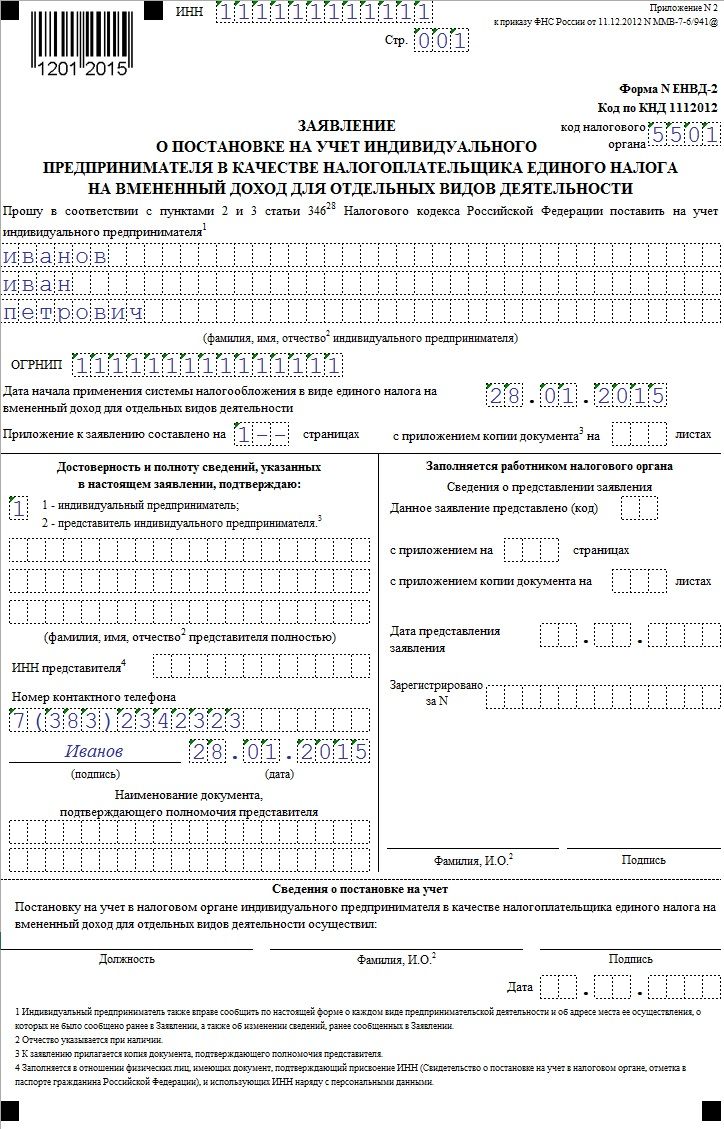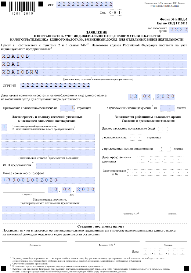 ЕНВД registreerimiseks tuleb maxumaksjal esitada avaldus maxuametile. См. tuleb üle anda maksuametile, kus organisatsioon või füüsilisest isikust ettevõtja on registreeritud ЕНВД maksjana ja kus esitatakse deklaratsioonid. Kui selliseid maxuaameteid on mitu (näiteks mitu müügikohta erinevates linnades), siis esitatakse taotlus igale registreerimiskoha maxuametile.