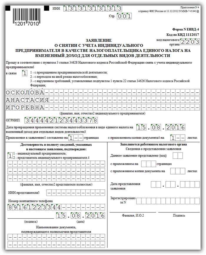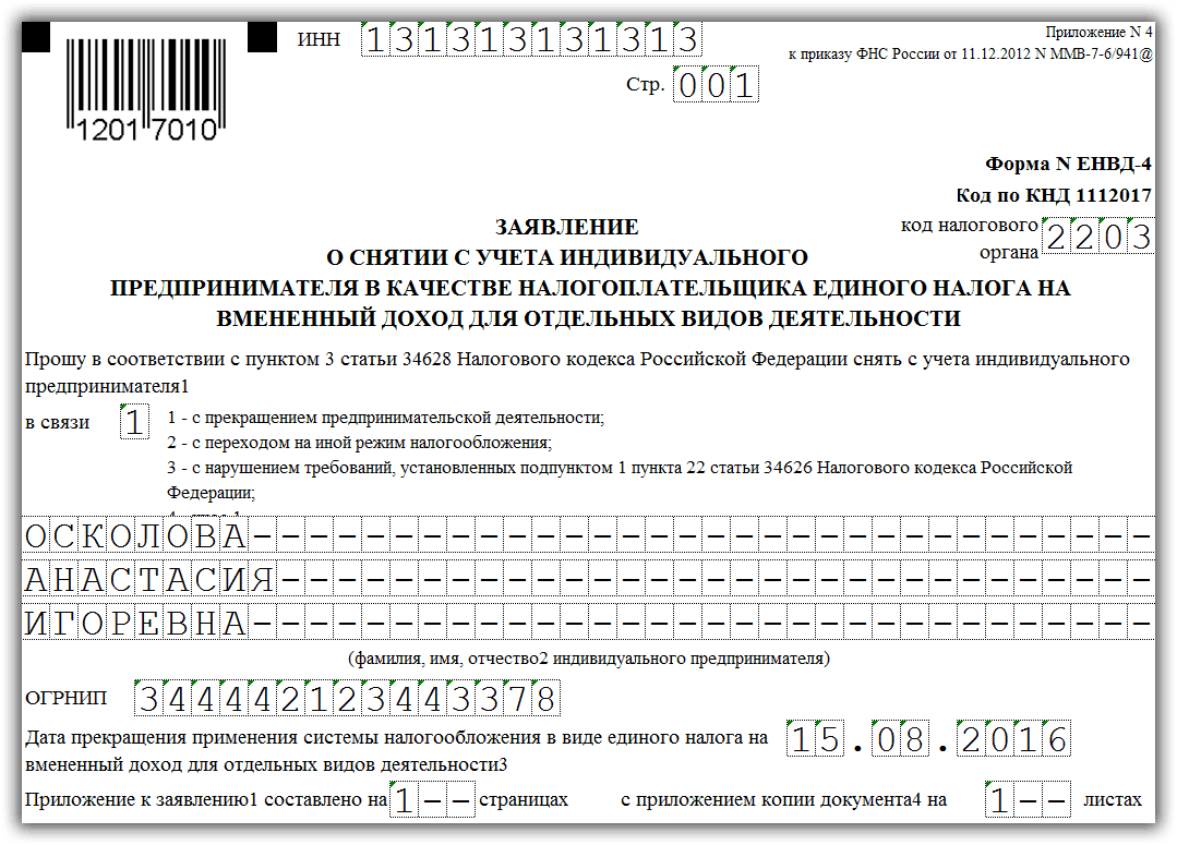 Kui organisatsioon ja füüsilisest isikust ettevõtja lõpetavad Selle maksuameti territooriumil tegevuse, mille jaoks UTII-d rakendati, on taotluses märgitud номер 1.STS-на võimalik alles alates 1. jaanuarist ja ülemineku teatis tuleb esitada hiljemalt 31. detsembril. Pidage meeles, et numbri 4 ekslik märkimine rakenduses viib selleni, et UTII maxsumaksjat registrist ei kustutata!