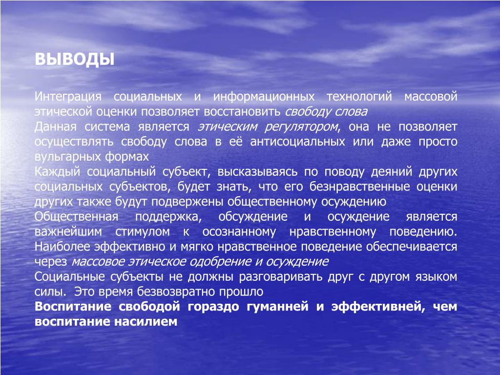 Мир действительно меняется, технологии, связанные с ИИ, уже занимают свое место в обществе. Наступает конец антропоцентризму. Человек перестает быть мерой всех вещей, и единственный для него способ избежать вырождения и морального устаревания — принять на себя всю полноту ответственности и осознанно регулировать создание и использование искусственного интеллекта.