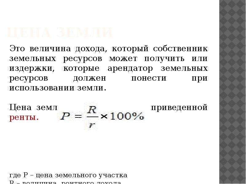 Формула цена земли: Земля как актив. Цена земли