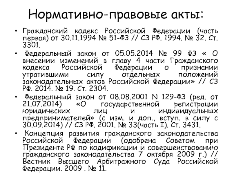 Законы Российской Федерации по ГК РФ ч. 1