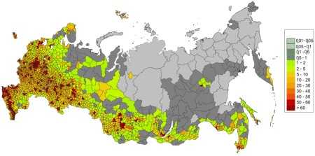 Что касается России, то она относится к категории низко заселенных государств, несмотря на то, что ее территория достаточно большая. Средний показатель плотности населения по России равен 1 человеку на 1 кв. км.