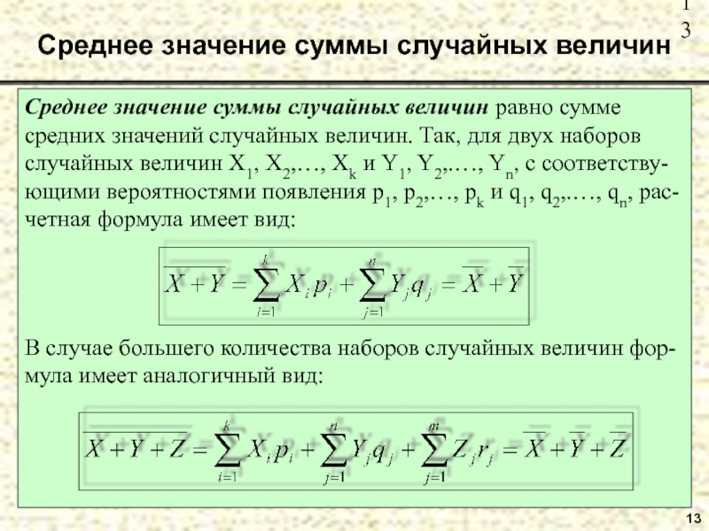 Среднее = (a 1 + a 2 + …. + a n ) / n