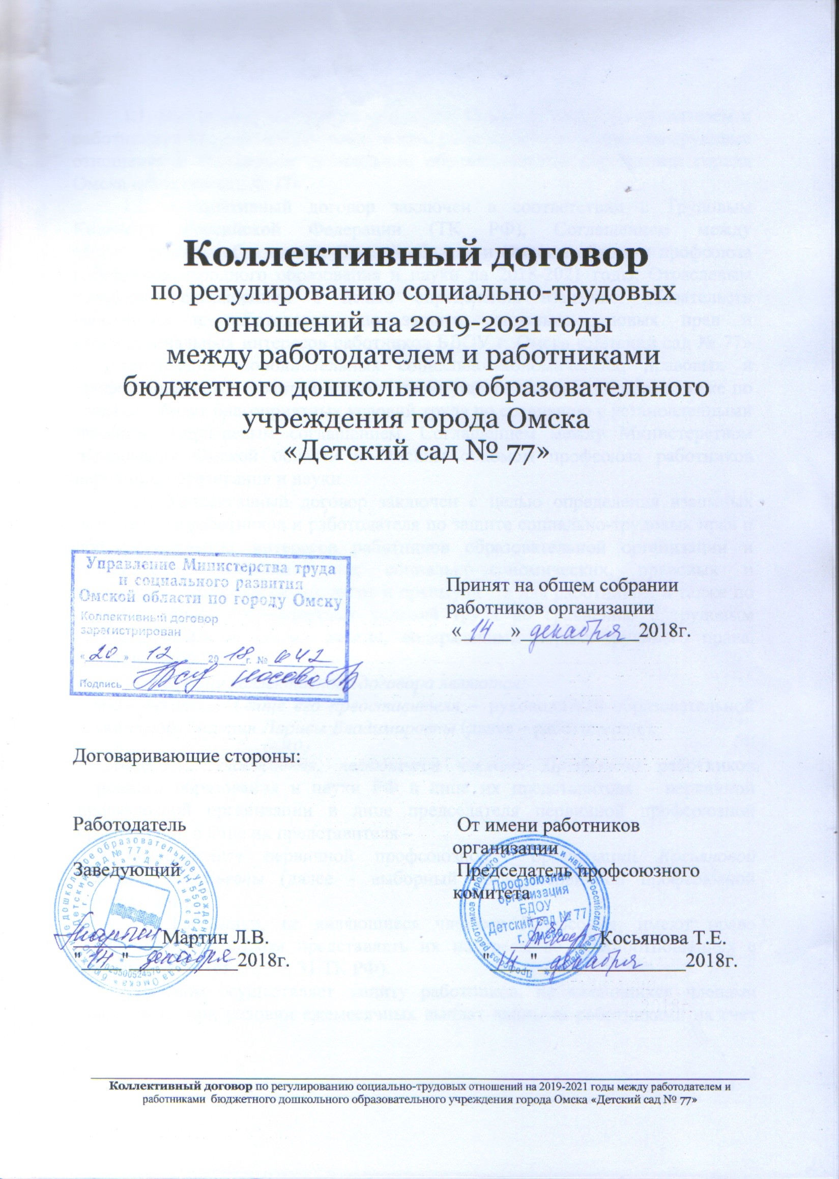 После принятия текста коллективного договора стороны подписывают документ. Со стороны работодателя договор подписывает руководитель компании, со стороны работников это обычно председатель профсоюза (или избранные представители сотрудников).
