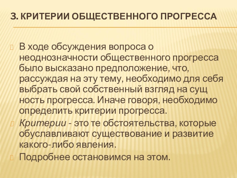 «Критерий прогресса» — мера, по которой судят о степени развитости общества.