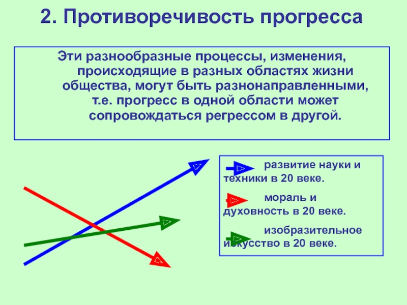 - Особенностью прогресса является его противоречивость, все критерии прогресса субъективны.