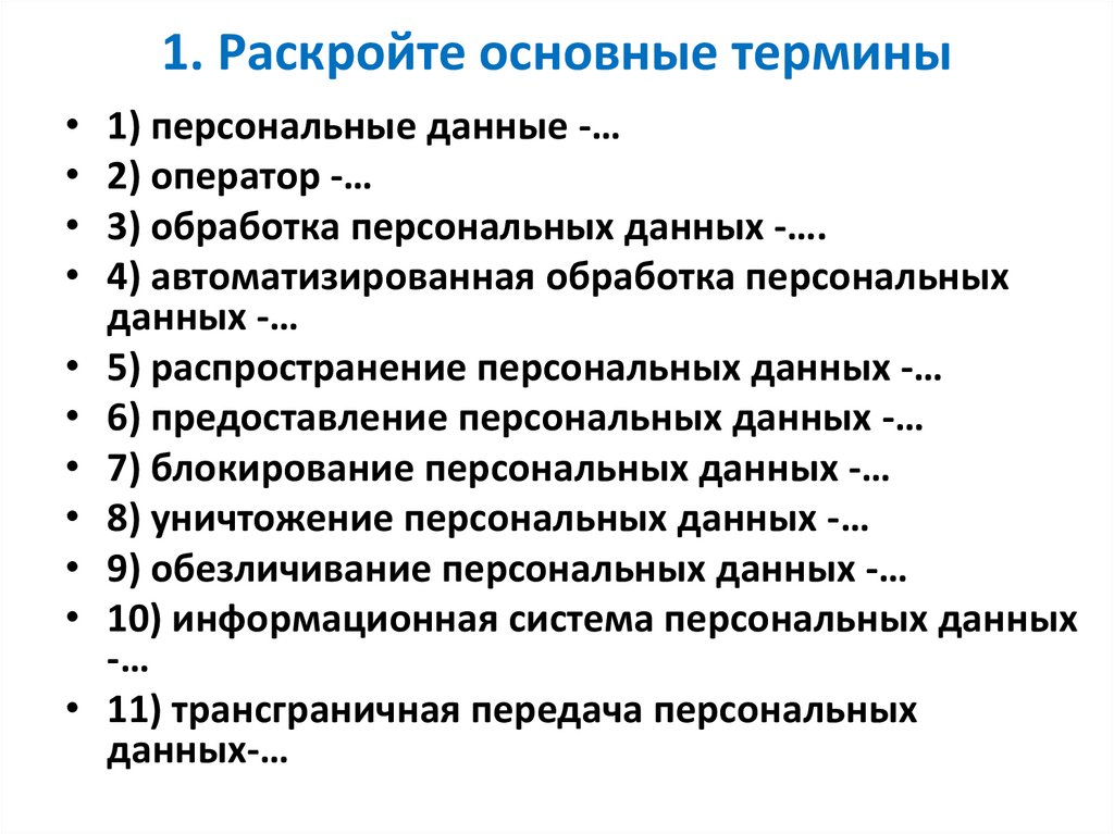 Предоставление персональных данных — действия, направленные на раскрытие персональных данных определенному лицу или определенному кругу лиц.