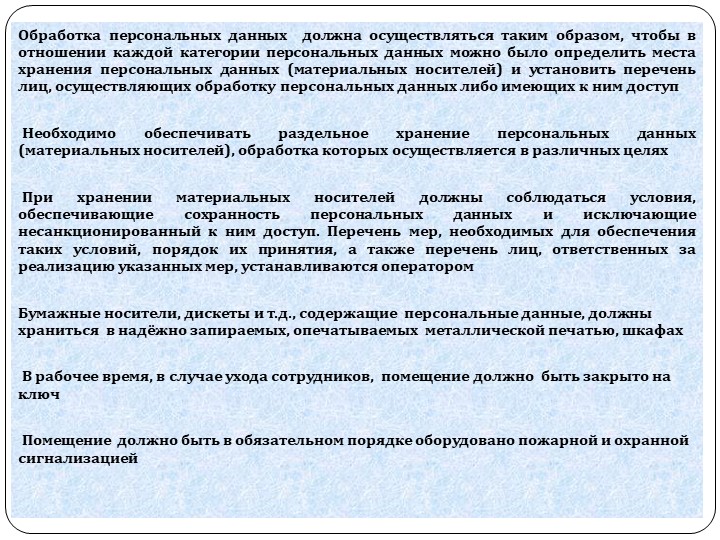 С учетом всех базовых принципов, описанных выше, требования к обработке данных можно разделить на три больших блока (ст. 19 Закона о персональных данных):