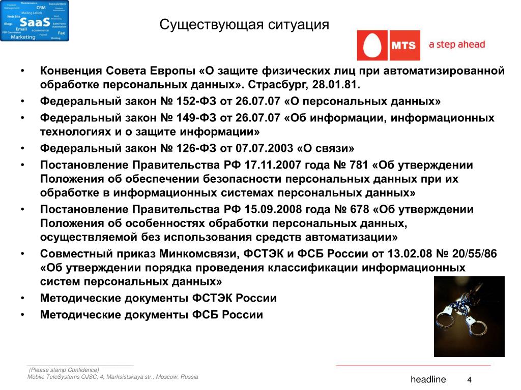 Постановление Правительства Российской Федерации от 17 ноября 2007 года №781 «Об утверждении Положения об обеспечении безопасности персональных данных при их обработке в информационных системах персональных данных»