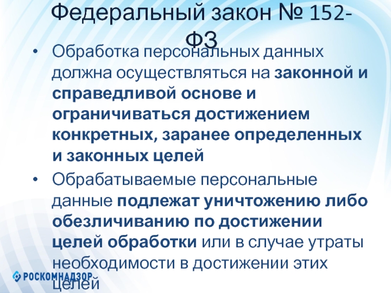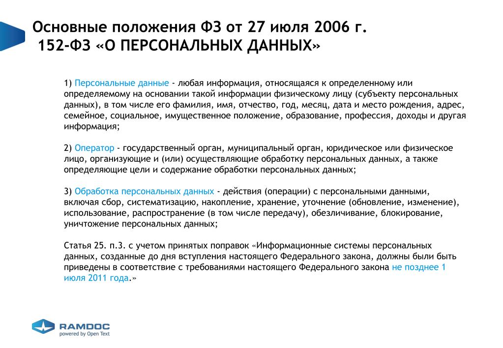 Федеральный закон от 27 июля 2006 года №152-ФЗ «О ПЕРСОНАЛЬНЫХ ДАННЫХ»