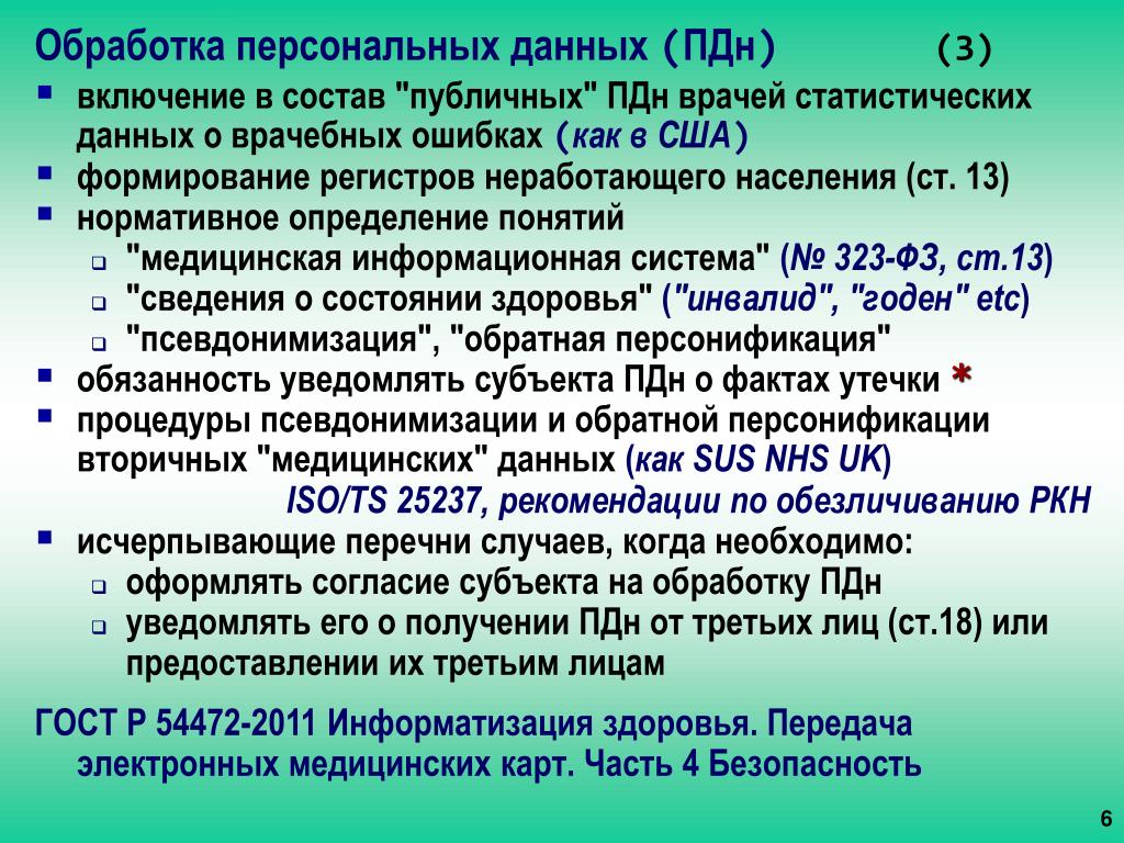 | 1. Обработка персональных данных, раскрывающих расовую или этническую принадлежность, политические взгляды, религиозные или философские убеждения, членство в профсоюзах, а также обработка генетических данных, биометрических данных в целях однозначной идентификации физического лица данные о здоровье или данные о сексуальной жизни или сексуальной ориентации физического лица запрещаются . => Статья: 6, 36 => Концерт: 35, 91 => Досье: Анонимизация | |||||||||||||||||||||||||||||||||