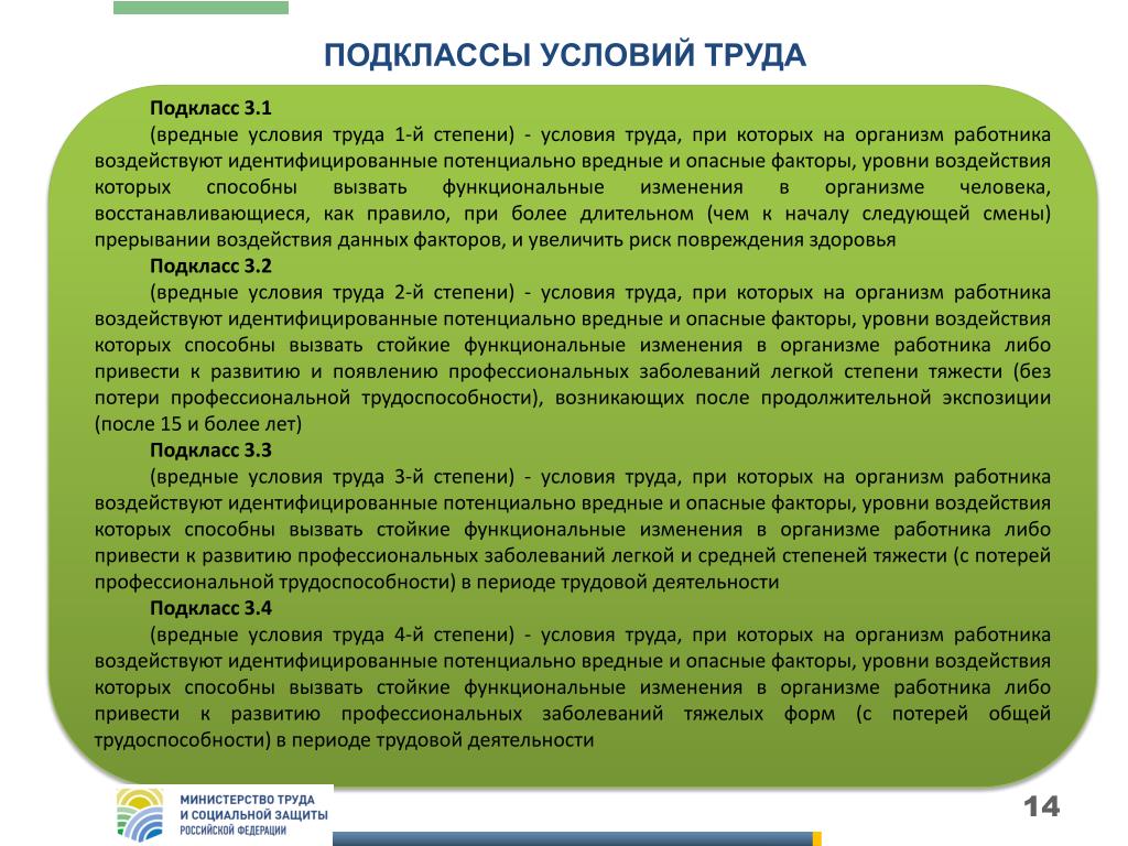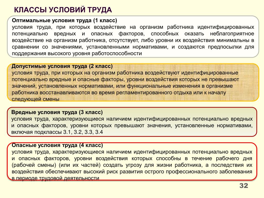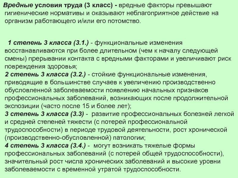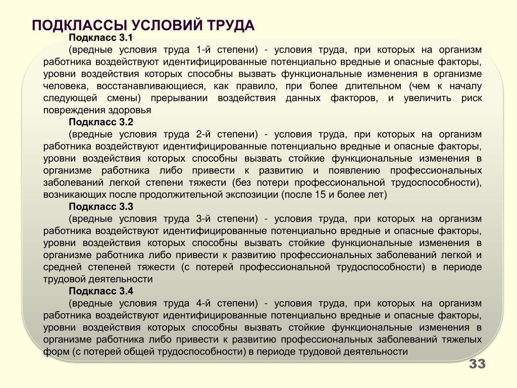 вредные условия труда, подклассы 3,1, 3, 2 и 3,3, что значат степени опасности на производстве, оценка профессий