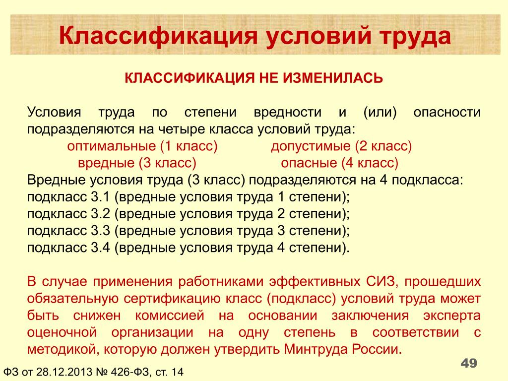 Определение вредные условия труда: Статья 14. Классификация условий труда / КонсультантПлюс