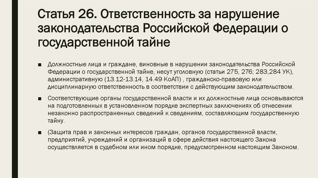 Мы можем отрицательно относиться к Концепции «Ответственности за защиту», не признавать ее легитимность, но вынуждены согласиться с фактом ее существования и применения мировым сообществом. А возможность ее расширения относительно катастрофических бедствий лишь повышает риск нарушения общепризнанных принципов международного права, закрепленных в Уставе ООН.