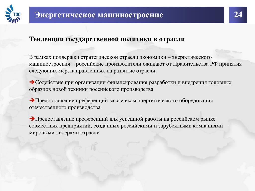Задачи энергетического машиностроения в РоссииОсновной задачей энергетического машиностроения в России является модернизация производственного оборудования.