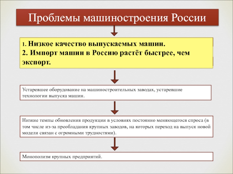 Так что первоочередная задача машиностроителей России в ходе намеченной экспансии будет состоять в том, чтобы догнать и перегнать Финляндию, а затем — Сингапур. И у той, и у другой страны доля на мировом рынке составляет 0,7%.