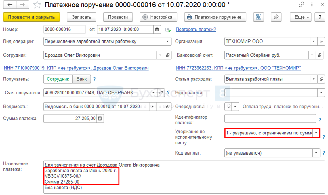 | payeeName | Полное наименование получателя платежа | Общество с ограниченной ответственностью «Получатель» |