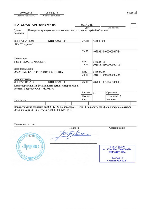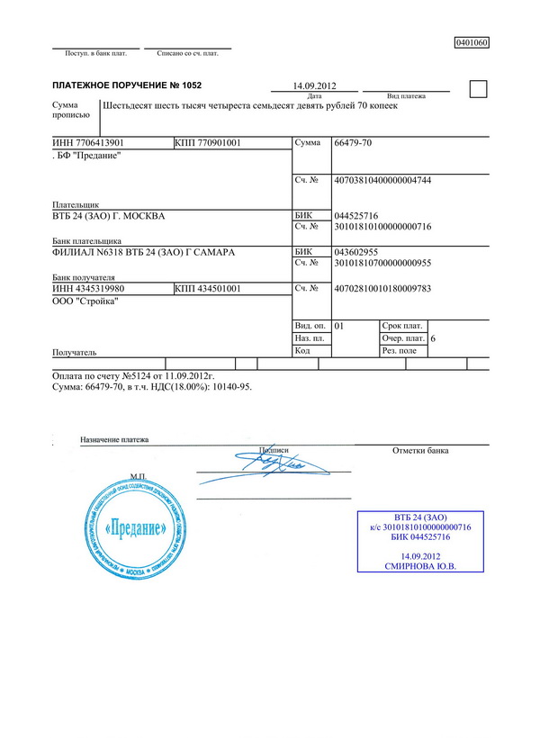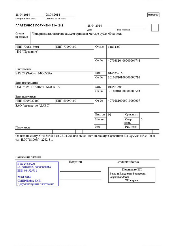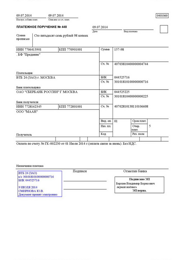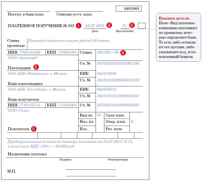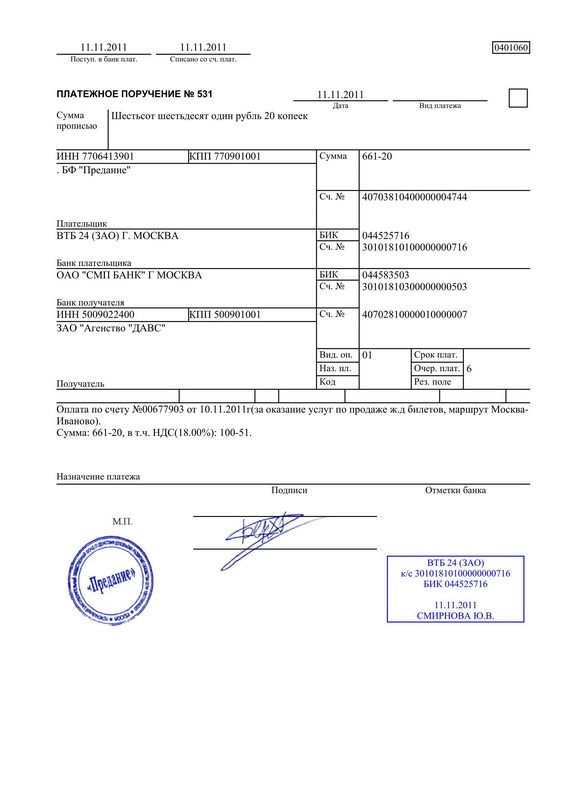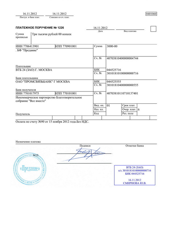 первый — служит основанием для списания средств со счета плательщика и после совершения операции помещается в документы для банка;