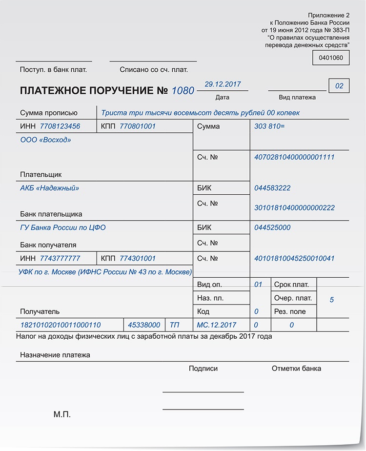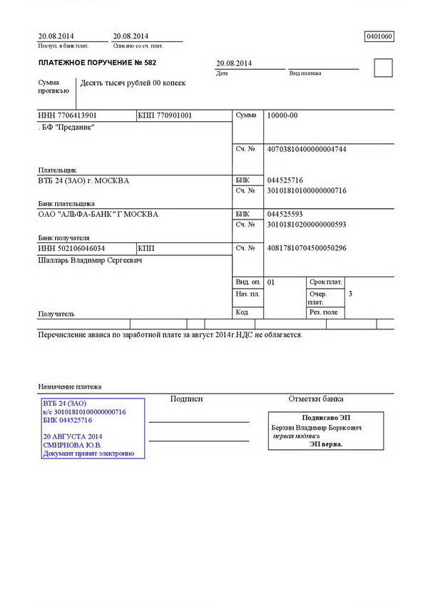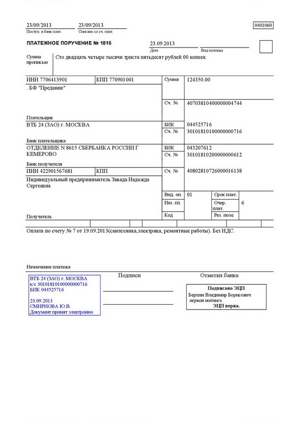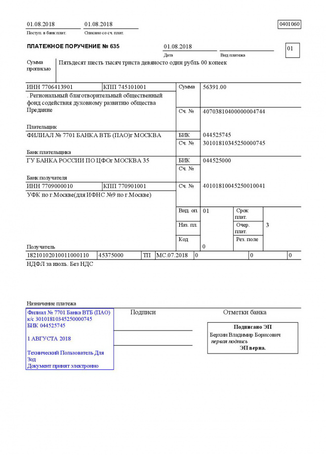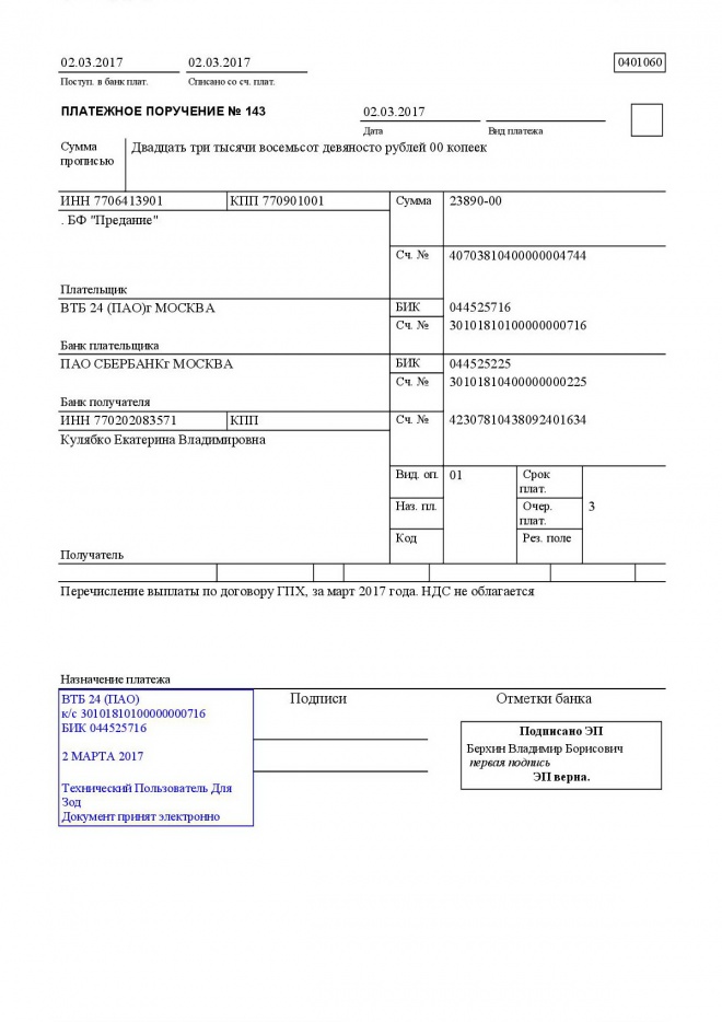 первый — служит основанием для списания средств со счета плательщика и после совершения операции помещается в документы для банка;
