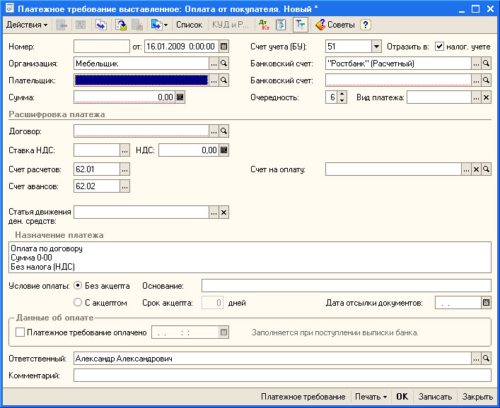 6.1. Платежное требование — поручение представляет собой требование поставщика к покупателю оплатить на основании направленных в обслуживающий банк плательщика расчетных и отгрузочных документов стоимость поставленной по договору продукции, выполненных работ, оказанных услуг.