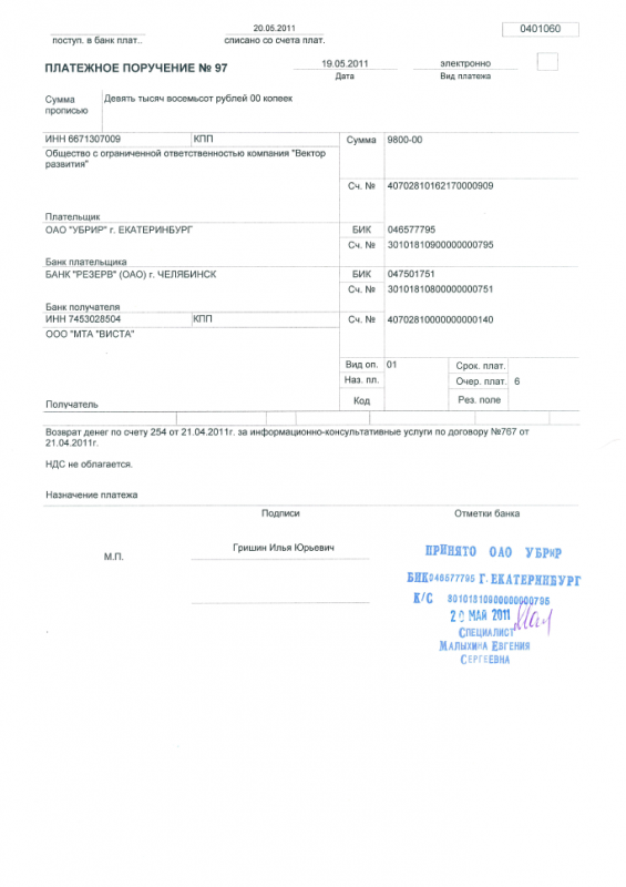 третий — вместе с отгрузочными документами возвращается плательщику как расписка в приеме к проводу и совершении оплаты товара, выполненных работ, оказанных услуг.