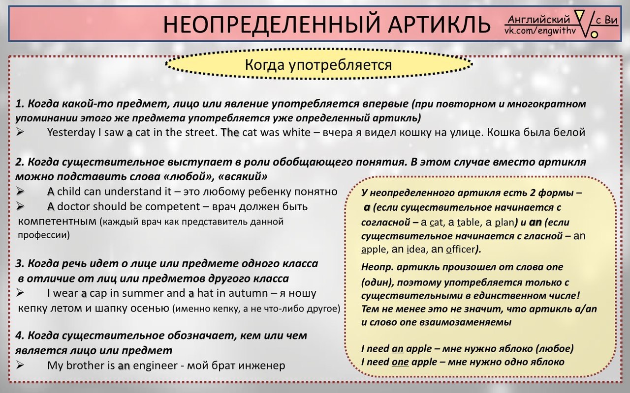 Правила использования артиклей a an the: неопределенный a/an, определенный the и нулевой ‹ Инглекс