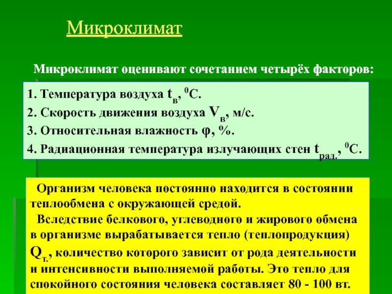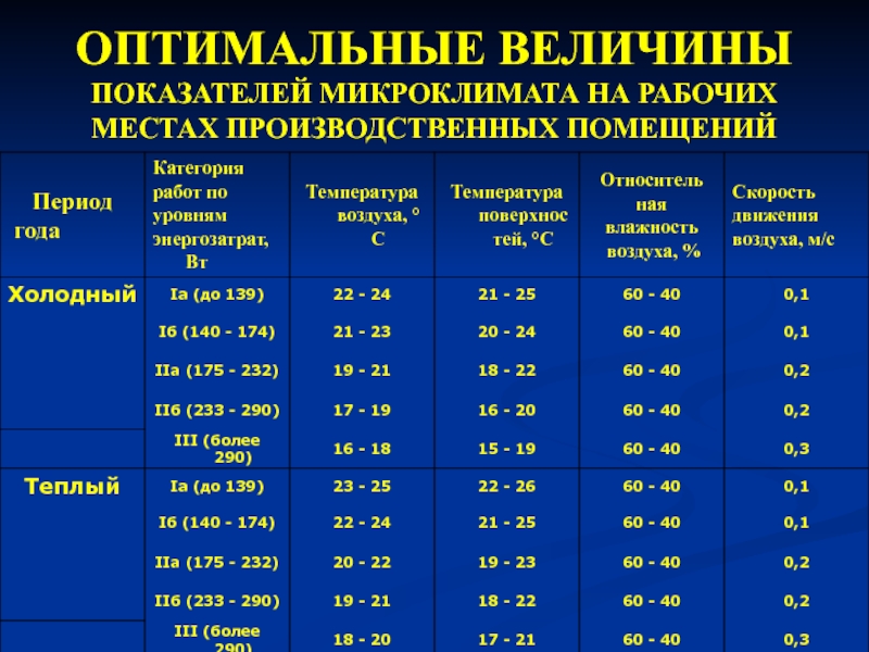 Показатели микроклимата