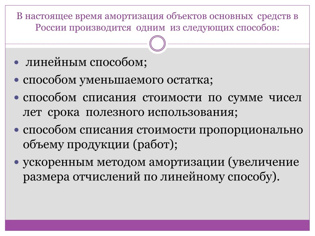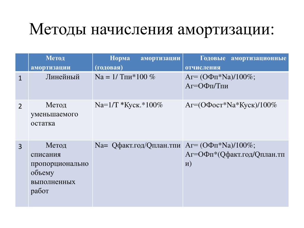 Существует несколько способов исчисления суммы амортизационных отчислений:
