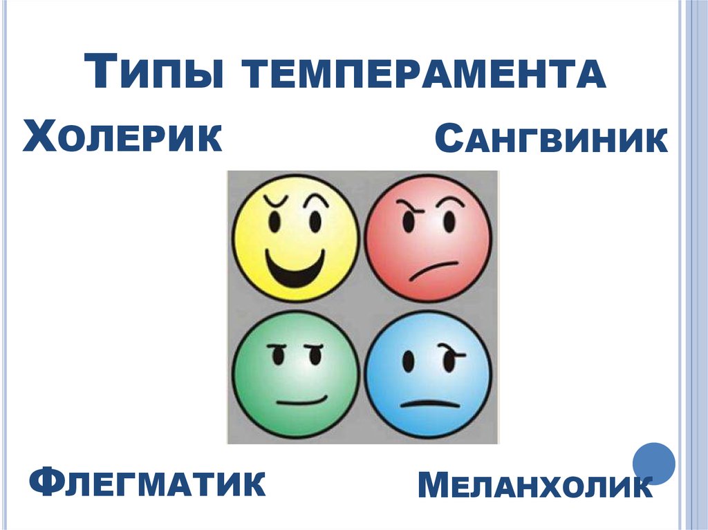 холерик, меланхолик, флегматик, сангвиник.