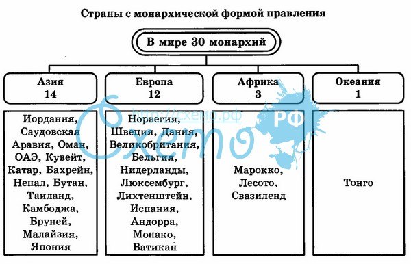 Республикой может управлять группа дворян, если нет ни одного монарха. Некоторые примеры стран с республиканской системой правления включают Аргентину, Боливию, Чехию и Францию. - Монархия