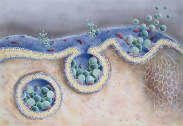 Экзоцитоз — это выведение цитоплазматической мембраной веществ из клетки (гормонов, полисахаридов, белков, жиров и др.). Данные вещества заключаются в мембранные пузырьки, которые подходят к клеточной мембране. Обе мембраны сливаются и содержимое оказывается за пределами клетки.