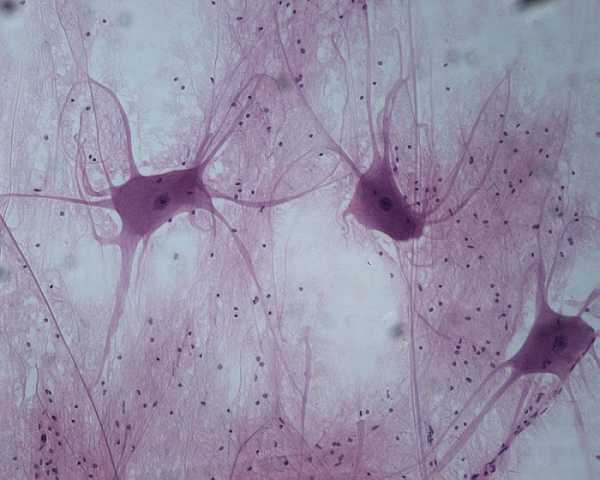Гистология нейрона представлена перикарионом (телом клетки) и двумя разновидностями отростков – аксоном и дендритами. В теле нейрона находятся органеллы, типичные для других клеток организма, и ряд специфических элементов. К последним относятся базофильные включения, их местонахождение – в основании дендритов. Они получили название вещества Ниссля (Nissi Granules) или тигроидной субстанции. Она представляет собой комплексы эндоплазматической сети. В них определяют большое содержание рибонуклеопротеидов и белково-полисахаридных соединений, необходимых для синтетической функции нейронов. Кроме этого, в цитоплазме перикариона обнаруживаются безмембранные белковые образования – нейрофибриллы, формирующие цитоскелет нейроцитов. Эти особенности строения обуславливают функциональные свойства отдельной нервной клетки.