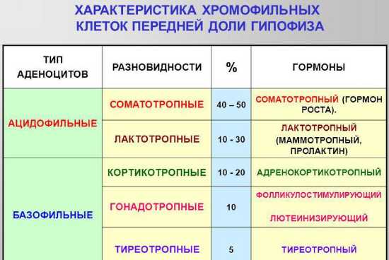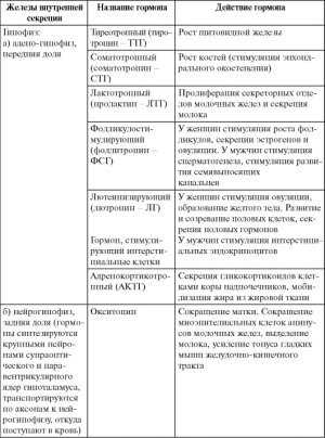 Гипофиз вырабатывает тропные гормоны. Он расположен у основания мозга, в месте, называемом турецкое седло. Вещества, вырабатываемые гипофизом, указаны в таблице.