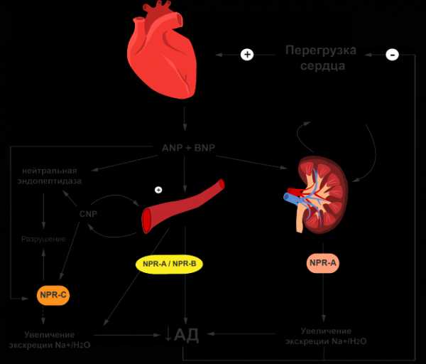 - Альдостерон, несущий в себе функцию регуляции обмена ионов натрия и калия, а также способствующий повышению АД за счет увеличения объема крови.