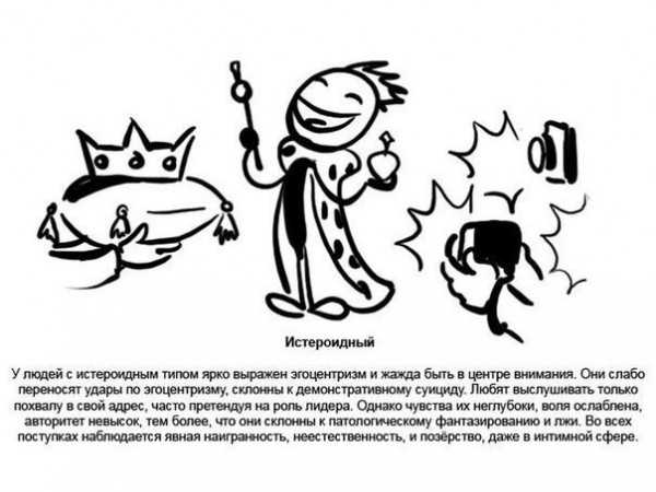 - Истероидный. Очень эгоцентричны, пытаются всегда находиться в центре внимания, боятся быть осмеянными. Занимают активную позицию, проявляют инициативность и упорство.