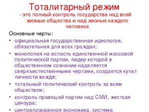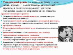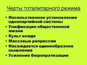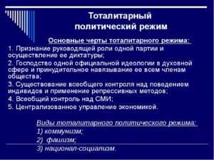 Говоря о том, что такое тоталитарный режим, уместно привести основные характеристики этого политического устройства:
