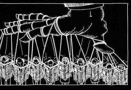 - Политическая пропаганда контролирует и подчиняет себе абсолютно все население.